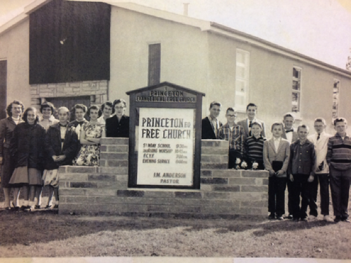 The opportunity of having an Evangelical Free church witness in the village of Princeton was discussed in 1946. Between 1946 and 1950, services were held under the leadership of the North Central District of the Evangelical Free Church of America. The purpose was to see if there was interest in an evangelical witness in the Princeton village. One major concern of the district was to provide a place for the residents of the Princeton Elim Home to worship. Under the leadership of Rev. Benjamin Lundstrom, superintendent of the North Central District, arrangements were made for the purchase of the Immanuel Lutheran Church building. In 1951 the church was moved from Eighth Avenue South to the corner of Ninth Avenue and Second Street in Princeton. Some of the building furnishings were brought from the Buffalo Free Church (Minnesota) after it closed. Rev. Warren Wedan, a theological student, served as the first pastor of the church beginning February of 1951. On April 8, 1951, the church was officially dedicated with Rev. A.J. Thorwall giving the dedicatory message. Financial help was provided by Free churches across the state as well as by the North Central District.